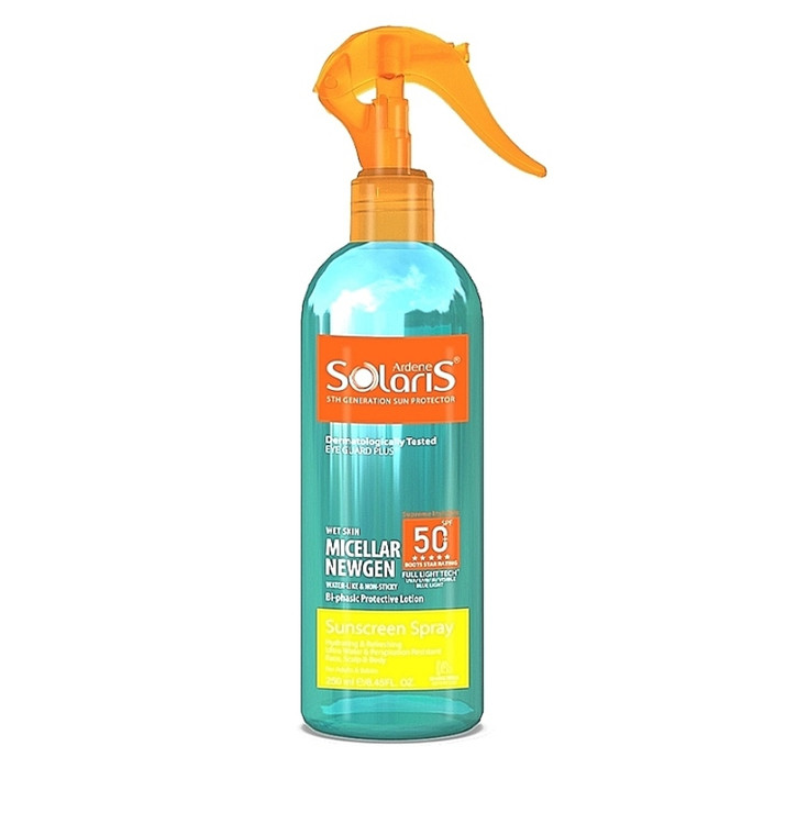 لوسیون ضد آفتاب دو فاز آردن سولاریس 📌 با حجم اقتصادی 250 میلی لیتر، محافظتی کامل در برابر UVA/UVB و نور آبی با SPF50+ فراهم میکند. فرمولاسیون سبک و میسلار آن بدون چربی یا چسبندگی، روی پوست خشک و مرطوب قابل استفاده است و با ترکیبات آبرسان مانند آلوئهورا و عصاره جلبک دریایی، پوست را مرطوب و تقویت میکند. این محصول ضدآب و ضدتعریق، برای تمام سنین و انواع پوست مناسب است و توسط پزشکان آلمان تایید شده است .